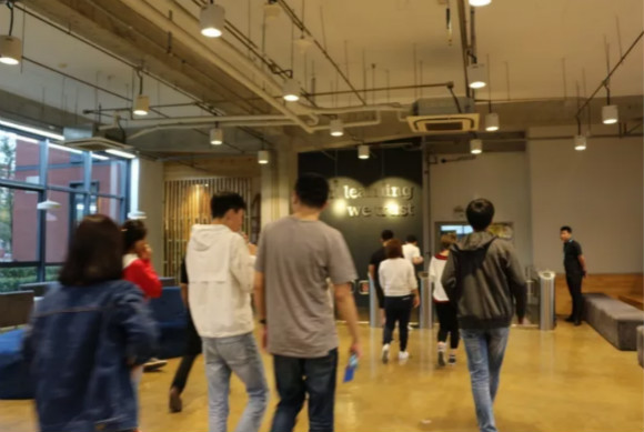 打卡進(jìn)樓,員工往來奔走。據(jù)介紹,尚德機(jī)構(gòu)員工的工作時(shí)間是有彈性的,有多種不同作息時(shí)間。