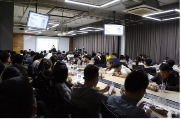 此時(shí),在大會(huì)議室“居魯士”里,即將開始一場(chǎng)培訓(xùn)會(huì),進(jìn)入會(huì)場(chǎng)前的員工們?cè)谶M(jìn)行登記。據(jù)介紹,像這種培訓(xùn)活動(dòng)每周會(huì)不定時(shí)地舉辦多場(chǎng),員工們都會(huì)可以在公司系統(tǒng)中報(bào)名參加。