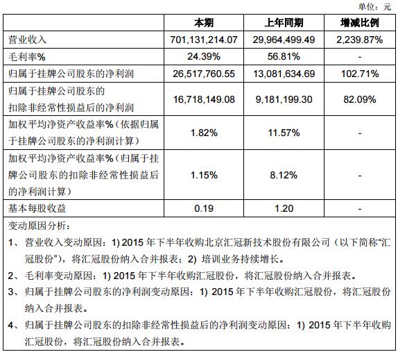 報(bào)告稱(chēng),和君商學(xué)上半年?duì)I收增長(zhǎng)原因是:1、2015年下半年收購(gòu)北京匯冠新技術(shù)股份有限公司,將匯冠股份納入合并報(bào)表;2、管理培訓(xùn)業(yè)務(wù)持續(xù)增長(zhǎng),學(xué)員人數(shù)及班次增長(zhǎng)。