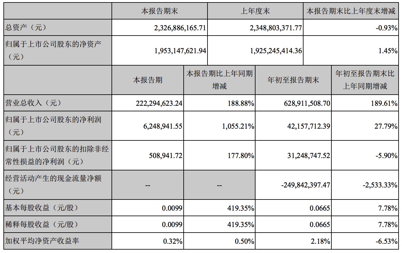 多知網(wǎng)10月26日消息,近日,全通教育發(fā)布2016年第三季度報(bào)告,報(bào)告顯示,全通教育營業(yè)總收入2.22億元,同比增長(zhǎng)188.88%;歸屬于上市公司股東的凈利潤624.89萬元,同比增長(zhǎng)1055.21%;歸屬于上市公司股東的扣除非經(jīng)常性損益的凈利潤50.89萬元,同比增長(zhǎng)177.80% 。