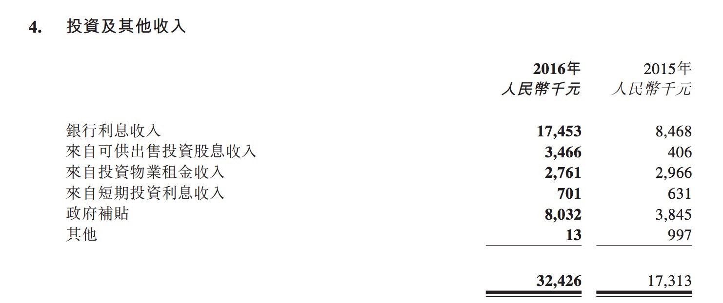 銀行利息收入1745.3萬元,相比較2015年增加了898.5萬元;來自可供出售投資股息收入346.6萬元,相比較2015年增加了306萬元。