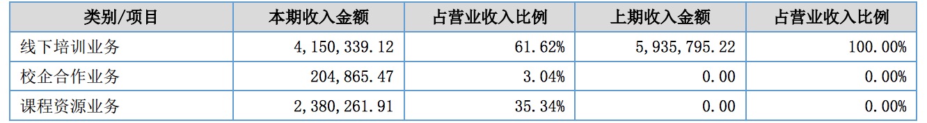 報告期內(nèi),九城教育戰(zhàn)略由線下培訓(xùn)業(yè)務(wù)“二次教育”向上游“一次教育”轉(zhuǎn)化升級,拓展校企合作、專業(yè)共建業(yè)務(wù),拓展多種校企合作模式。受業(yè)務(wù)重心轉(zhuǎn)移影響,線下培訓(xùn)業(yè)務(wù)規(guī)模收縮導(dǎo)致收入下降,同時校企合作業(yè)務(wù)收入尚未得到明顯體現(xiàn)。
