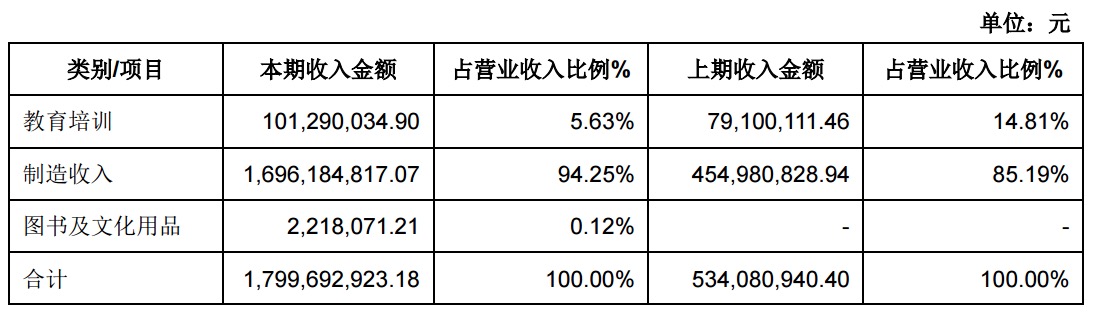 其中,制造收入16.96億元,占營(yíng)收94.25%;教育培訓(xùn)收入1.01億元,占營(yíng)收5.63%;圖書(shū)及文化用品收入221.80萬(wàn)元,占營(yíng)收0.12%。制造收入為匯冠股份及其控股、參股企業(yè)主要業(yè)務(wù)。