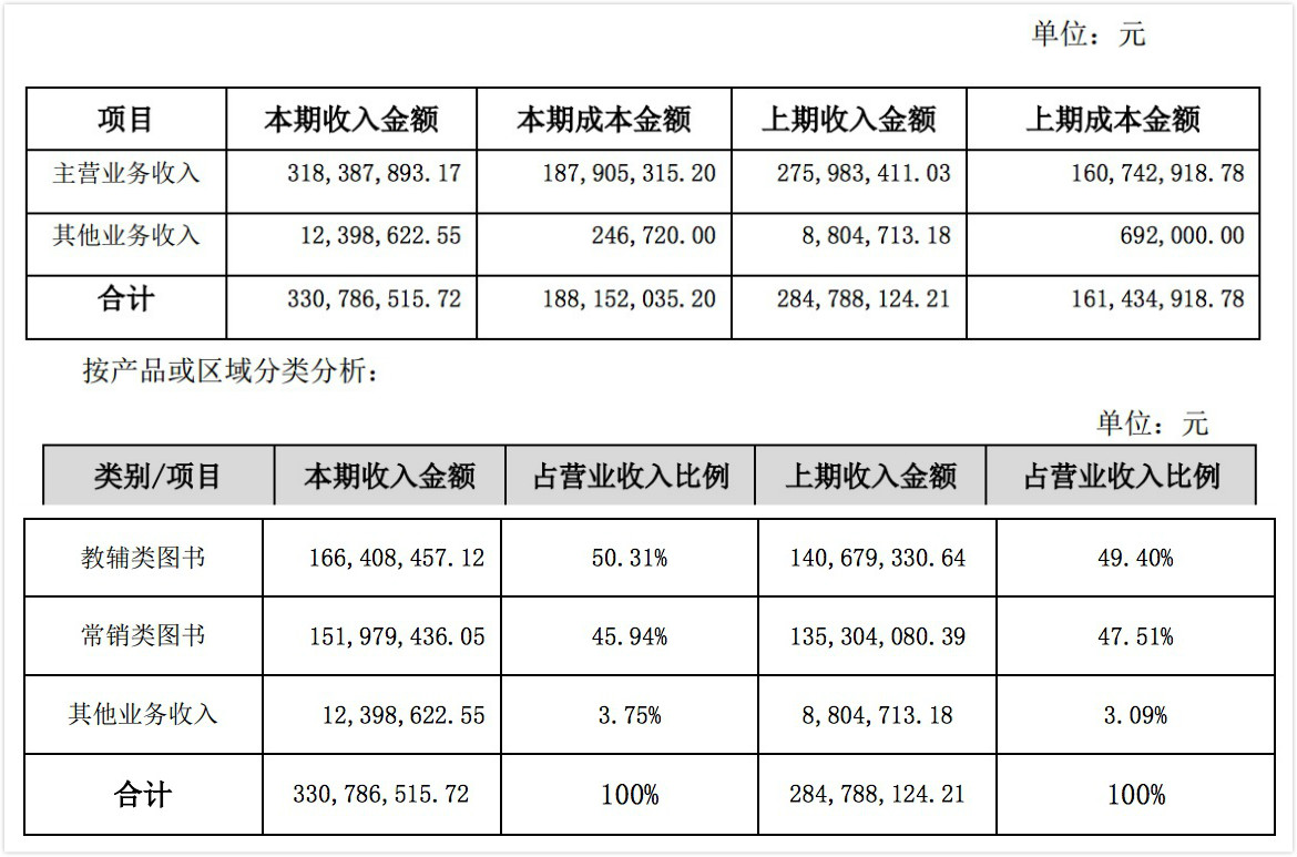 報(bào)告披露,2016年北教傳媒主營(yíng)業(yè)務(wù)收入3.18億元,其它業(yè)務(wù)收入1239.86萬(wàn)元。其中,教輔類圖書收入1.66億元,占營(yíng)收50.31%;常銷類圖書收入1.52億元,占營(yíng)收45.94%;其它業(yè)務(wù)收入1239.86萬(wàn)元,占營(yíng)收3.75%。