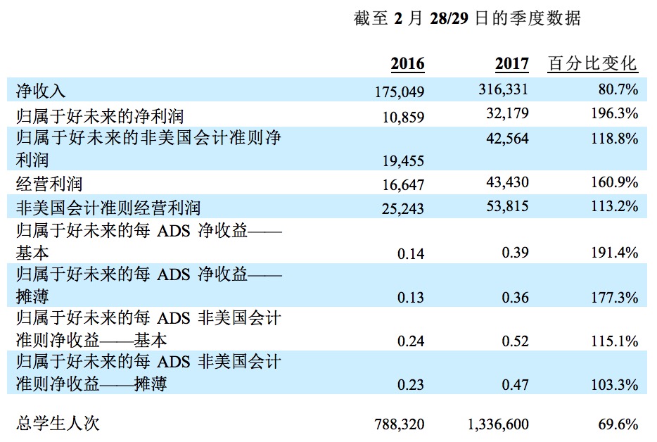 2017財(cái)年第四季度好未來(lái)業(yè)績(jī)摘要: