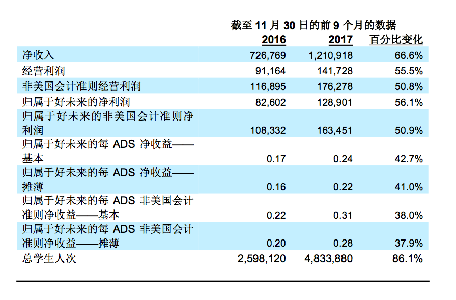 歸屬于好未來的凈利潤從上年同期的8260萬美元增長到1.289億美元,增幅為56.1%。