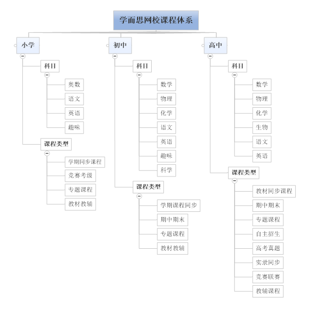 科目:小學(xué)課程側(cè)重于語(yǔ)數(shù)(奧數(shù))英,并提供魔方、超記憶撲克牌等趣味課程,六年級(jí)還添加了小升初課程;初中課程在高考科目基礎(chǔ)上添加了趣味課程和科學(xué)課;中學(xué)課程以理科為主,沒有包括政史地,高三添加了高考真題講解和自主招生課程。