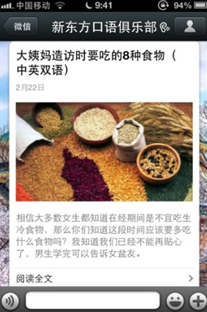 導(dǎo)語(yǔ):由于目標(biāo)用戶(hù)不精準(zhǔn),轉(zhuǎn)化難,越來(lái)越多的機(jī)構(gòu)已經(jīng)拋棄微博,投奔微信。電商界各類(lèi)關(guān)于微信的“神話(huà)”層出不窮,更給教育圈不小的動(dòng)力。玩微信,第一步是抓粉,怎么樣有效增加并黏住這些粉絲?沈陽(yáng)新東方英語(yǔ)學(xué)習(xí)部總監(jiān)覃流星投稿,詳細(xì)介紹了他們是怎么運(yùn)營(yíng)一個(gè)粉絲3萬(wàn)+的公眾號(hào)的,以下為全文: