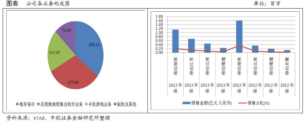拓維信息是一家集教育服務(wù)、手游、動(dòng)漫、信息系統(tǒng)集成等多業(yè)務(wù)于一身的高新技術(shù)企業(yè)。在智能手機(jī)產(chǎn)生后的移動(dòng)互聯(lián)網(wǎng)浪潮中,移動(dòng)增值行業(yè)(IVR、彩鈴彩信、短信互動(dòng)等)逐漸步入成熟期,公司與其他SP廠商一樣開啟了移動(dòng)互聯(lián)網(wǎng)的轉(zhuǎn)型之路。目前公司戰(zhàn)略定位主要聚焦于兩大方向:1、移動(dòng)教育互聯(lián)網(wǎng)產(chǎn)品:包含教育信息化、互聯(lián)網(wǎng)教育、線下創(chuàng)新學(xué)習(xí)中心三個(gè)模塊;2、手游:包含代理發(fā)行和內(nèi)容提供。