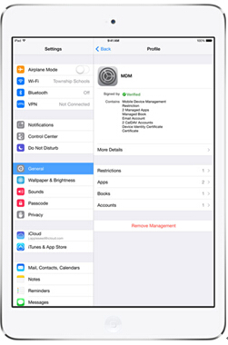 新的MDM功能幫助IT管理員在他們管理的iOS設(shè)備上做更多事情。他們可遠程設(shè)定設(shè)備名稱,阻止用戶加入自己的限制要求或清除設(shè)備數(shù)據(jù)。新的查詢可讓管理員看到設(shè)備最后一次備份到iCloud的情況,以便知道執(zhí)行某些管理任務(wù)是否安全。設(shè)備上的MDM登記信息也被重新設(shè)計,用戶更容易理解政策和被管理的功能。