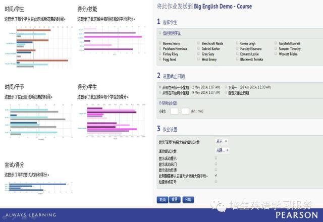 在個(gè)性化英語(yǔ)教育領(lǐng)域,傳統(tǒng)上教師需要花費(fèi)大量時(shí)間分析單個(gè)學(xué)生的學(xué)情動(dòng)態(tài),逐一制定相應(yīng)的教學(xué)解決方案,因此備課時(shí)間和教學(xué)成本居高不下。但“大數(shù)據(jù)”讓這一切變得更簡(jiǎn)單了。以培生集團(tuán)最新出版的全球少兒美語(yǔ)旗艦課程Big English為例,這套課程引入了首款應(yīng)用于少兒英語(yǔ)學(xué)習(xí)領(lǐng)域的MyEnglishLab在線(xiàn)學(xué)習(xí)輔導(dǎo)系統(tǒng)(以下簡(jiǎn)稱(chēng)MEL),應(yīng)用大數(shù)據(jù)技術(shù)全程實(shí)時(shí)分析學(xué)生個(gè)體和班級(jí)整體的學(xué)習(xí)進(jìn)度、學(xué)情反饋和階段性成果,從而及時(shí)找到問(wèn)題所在對(duì)癥下藥,實(shí)現(xiàn)對(duì)學(xué)習(xí)過(guò)程和結(jié)果的動(dòng)態(tài)管理。