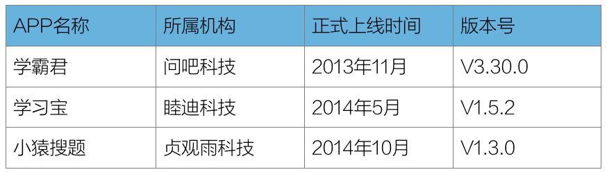 從去年開始,一批專注于K12領(lǐng)域的答疑類題庫涌現(xiàn),包括以作業(yè)幫為代表的學(xué)生互答UGC模式,以及以學(xué)霸君為代表的圖像識別加機器學(xué)習(xí)的拍照搜題模式。多知網(wǎng)編輯選取了學(xué)霸君、學(xué)習(xí)寶和猿題庫旗下的小猿搜題這三款市場上最主流的拍照搜題APP進行測評。測評指標為搜題準確率。