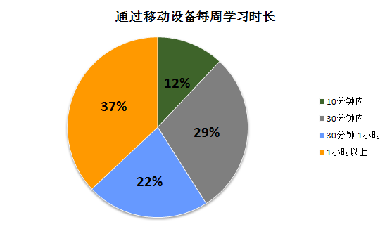 報告顯示,6成用戶每周在線學習時間不足1小時。在PC端,30%的用戶每周在線學習時長在半小時以內(nèi),27%的用戶周在線學習時長超過2小時,在線學習時長呈現(xiàn)“兩極化”;在移動端,41%的用戶每周在線學習時長不到半小時,12%的用戶每周少于10分鐘,22%的用戶每周學習半小時-1小時,37%的用戶每周學習時長超1個小時。
