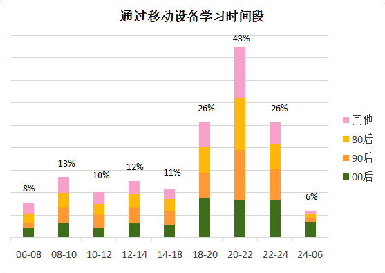 學習時段:用戶多選擇晚上學習,集中化明顯