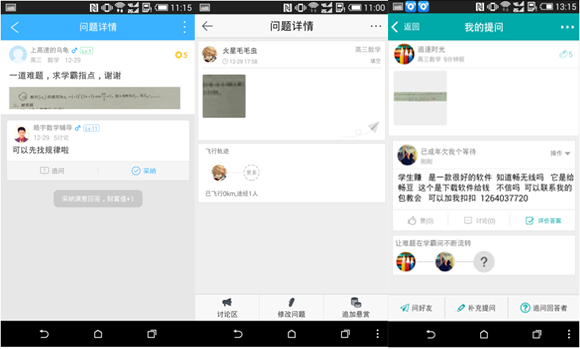 2014年,各類答疑軟件興起,無非分為三種形式:一是拍照答疑(機(jī)器識別),二是人工答疑,三是機(jī)器與人工混合答疑。此前,多知網(wǎng)對拍照答疑軟件進(jìn)行了評測。本次,多知網(wǎng)選擇了三款人工答疑軟件進(jìn)行評測,分別是作業(yè)幫、作業(yè)神器、愛考拉。