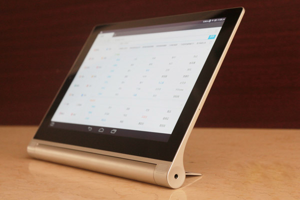 YOGA平板2屏幕是8英寸,支持1920*1200高清分辨率,續(xù)航能力18個小時。其操作系統(tǒng)使用了Win8.1操作系統(tǒng),支持64GB的MicroSD卡。最值得注意的是,該平板的屏幕可以用任何筆來進行輸入操作。底部的卷軸,可支持4種握持方式。