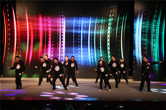 達(dá)內(nèi):高管團(tuán)隊(duì)跳起小蘋果來,動(dòng)作略羞澀。但就這衣服看來,怎么有點(diǎn)像黑客亂入?最右邊哥們的內(nèi)心獨(dú)白:“咦,我錯(cuò)了?”。