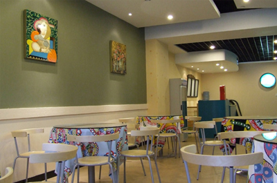 此外,“Language in Group”的教室還配有學生可以通過iPad與之連接的顯示屏,一整面墻刷成了白板,還有兩面墻貼有“高級酒店和飯店里的那種墻紙”。