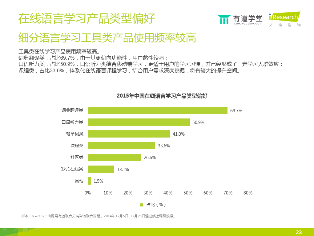 6)智能手機的滲透率較高,已經(jīng)成為在線語言學(xué)習(xí)的第一終端工具。