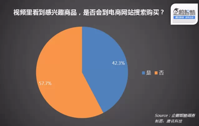 看視頻時看到感興趣的商品,42.3%的用戶表示會到電商網(wǎng)站搜索購買同款。這為視頻網(wǎng)站為何有必要推出“邊看邊買”功能提供了依據(jù)。