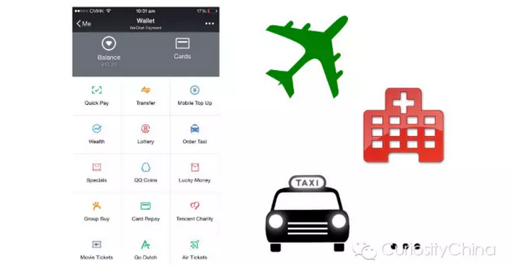 2015年第一季度末,通過微信已實(shí)現(xiàn)大部分城市的當(dāng)?shù)厣鐣卜?wù),包括公共交通、生活設(shè)施繳費(fèi)、醫(yī)療、市政等服務(wù)。