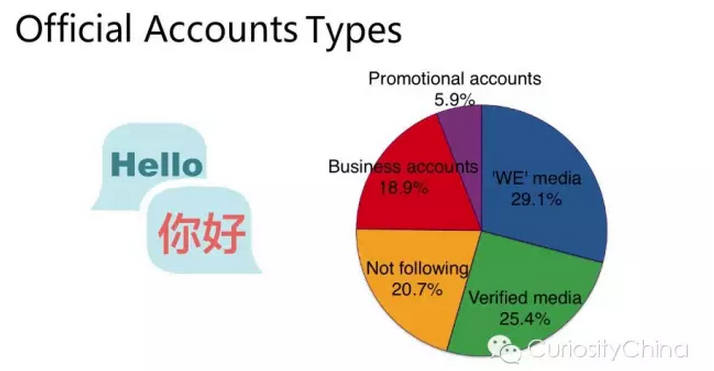 企業(yè)和媒體的公眾賬號是用戶主要關(guān)注的對象,比例高達(dá)73.4%。