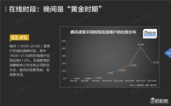 今日企鵝智庫發(fā)布在線教育報(bào)告,報(bào)告顯示,中國是除印度之外在線教育增長最快的國家,增長率為52%。直播用戶數(shù)量明顯,一年內(nèi)用戶增長率達(dá)到1219%。去年,付費(fèi)用戶增長明顯,一年內(nèi),付費(fèi)用戶的增長率達(dá)到1670%,比整體用戶的增幅還要高。19點(diǎn)到24點(diǎn)是用戶在線的高峰時(shí)段。用戶日均人均直播時(shí)長波動(dòng)較大,整體呈增長趨勢。月度增長率高達(dá)52 4%。