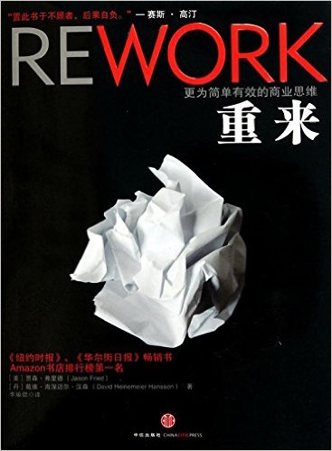 推薦語:這本書呈現(xiàn)的是一種另類的經(jīng)商成功之道。讀完這本書,你也許會明白為什么計劃有時候百害而無一益,為什么你不需要外界投資人,為什么將競爭視而不見反倒會發(fā)展得更好。你不必成為工作狂,你不必大量招兵買馬,你不必把時間浪費在案頭工作和會議上,你甚至不必擁有一間辦公室?!吨貋怼酚弥苯亓水?shù)恼Z言和崇尚簡約的方式,為每一個夢想著擁有自己的事業(yè)的人提供完美指南。不管是作為中堅力量的企業(yè)家、小企業(yè)主,還是深陷令人不快的工作中的職場中人、被炒魷魚的受害者,抑或是想要“脫貧”的藝術(shù)家,都能在這一頁頁中找到彌足珍貴的指引。