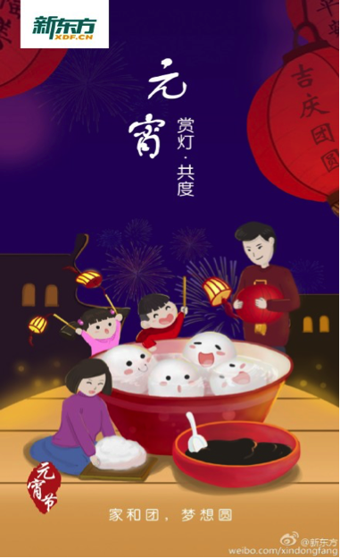 新東方:家和萬(wàn)事興,有夢(mèng)就去做。食物要吃傳統(tǒng)的,元宵還是黑芝麻的最好吃啊!