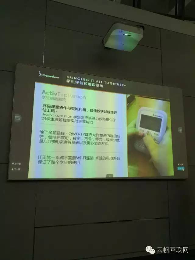 ActiveInspire是電子白板配套了一個(gè)教學(xué)軟件,是它在發(fā)揮作用,電子白板會(huì)把視頻和圖片從軟件里轉(zhuǎn)出來(lái)。普米在歐美的市場(chǎng)占有率是最高的,不止是在中小學(xué),你在英國(guó)劍橋大學(xué)也會(huì)看到普米的電子白板。在中國(guó)比較有意思,用電子白板最多的不是學(xué)校,而是中央電視臺(tái)。畢福劍先在星光大道用,撒貝寧現(xiàn)在用來(lái)點(diǎn)贊,但實(shí)際上最需要的用的是我們的課堂。中國(guó)是大班教育,不像是外國(guó)十幾個(gè)學(xué)生一個(gè)班,現(xiàn)在我們有技術(shù),能讓老師知道坐在最后一排的學(xué)生在做什么,這就是加強(qiáng)反饋。我們有一個(gè)簡(jiǎn)單的功能,叫小雞蛋,也就是vote,三個(gè)七號(hào)電池可以穩(wěn)定的用一年半。我們還有綜合問(wèn)答器,題型更多。普米不生產(chǎn)pad, 但是可以更針對(duì)性的開發(fā)app,只要有手機(jī)和網(wǎng)絡(luò)就可以用。以上就是普米三十年在全球市場(chǎng)達(dá)成的兩點(diǎn),多人參與以及有效果。在中國(guó),我們要達(dá)成協(xié)作學(xué)習(xí)。教育需要培養(yǎng)孩子畢業(yè)之后在團(tuán)隊(duì)里面工作的能力,不能全是老師給安排事情,需要培養(yǎng)協(xié)作精神。我們開發(fā)了很多的內(nèi)容,接下來(lái)可以看普米要做的事情。