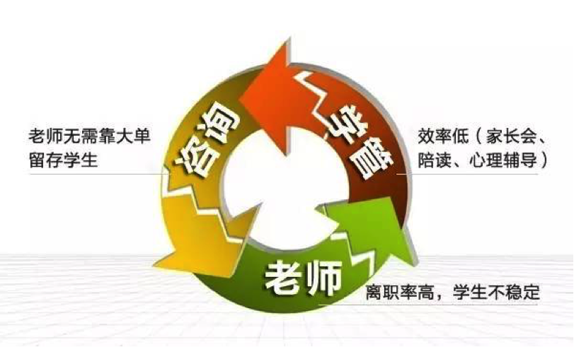 我們都覺得咨詢的作用是拉新,學管師的作用是續(xù)費,老師的作用是消耗。而且老師特別不靠譜!經(jīng)常要把學生帶回家上課!離職還一定把我們辛苦招來的學生帶走!所以要用學管阻隔!