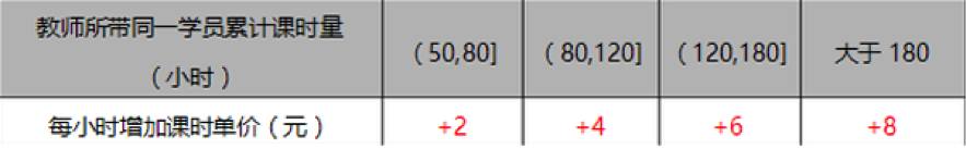 取消課時費按照月累計總課時量分檔的模式,將其納入到教師同一學員的累計課時激勵。