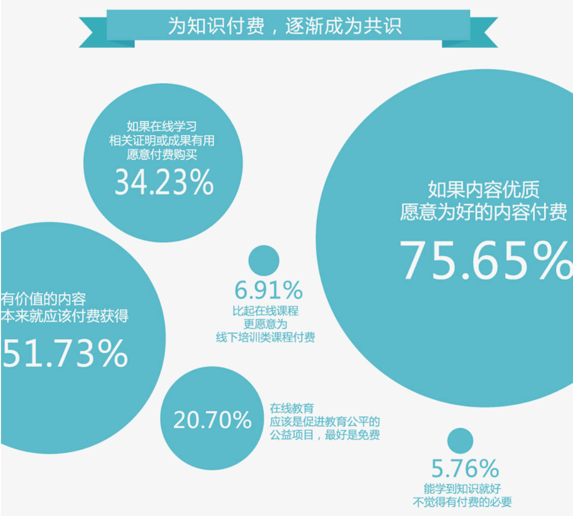 “為知識付費”獲得了超過七成學(xué)習(xí)者的認(rèn)可,逐漸成為人們共識。75.65%學(xué)習(xí)者表示如果內(nèi)容優(yōu)質(zhì)則愿意為優(yōu)質(zhì)內(nèi)容付費,更有超過50%學(xué)習(xí)者認(rèn)為,有價值的內(nèi)容本來就應(yīng)該付費獲得。