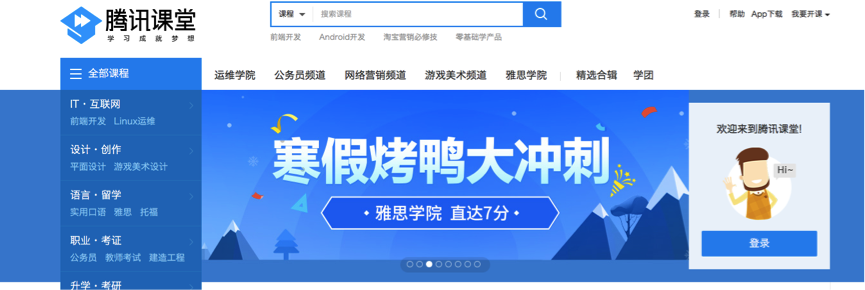 付費(fèi)能力轉(zhuǎn)化方面,提升機(jī)構(gòu)、課程、學(xué)員三者之間的匹配度。騰訊課堂將會大力推廣學(xué)院制和系列化課程。比如騰訊課堂官網(wǎng),除了最上面的搜索欄和左側(cè)的全部課程外,還將運(yùn)維、公務(wù)員、雅思、網(wǎng)絡(luò)營銷等細(xì)分領(lǐng)域單獨(dú)列出。每一個細(xì)分領(lǐng)域都包含有多家機(jī)構(gòu)的課程。
