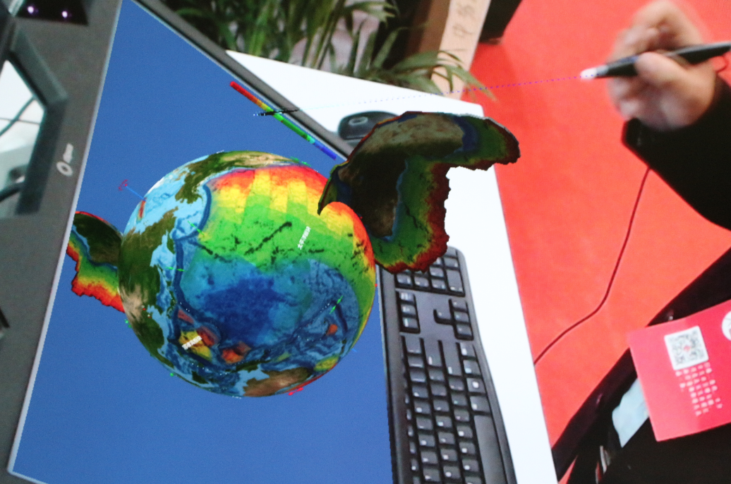 多知當(dāng)天還在現(xiàn)場體驗(yàn)了一堂生動的地理課,帶上普通的3D眼鏡,立體地觀察地球上的每一個(gè)角落。北京日月星云自主研發(fā)的這款教學(xué)軟件,可以3D/2D隨意切換,生動地講解地理知識。