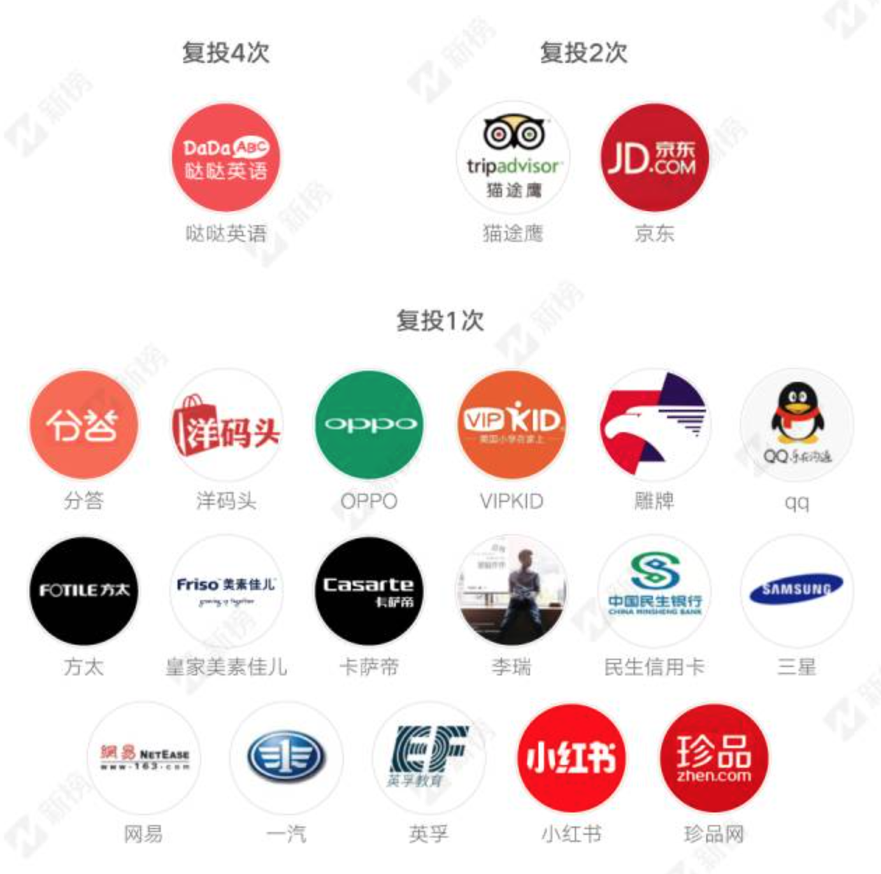 據(jù)新榜統(tǒng)計(jì),包括咪蒙自己在內(nèi),“咪蒙”一共有118個廣告主,有20家廣告主進(jìn)行過復(fù)投,其中噠噠英語的復(fù)投次數(shù)最多。從2016年5月至今,噠噠英語與咪蒙共合作過5次,僅今年就投放了兩次,稱得上老金主。此外,分答、 VIPKID、英孚復(fù)投過1次。
