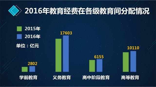 學(xué)前教育經(jīng)費(fèi)總投入2802億元,比去年增長15.48%,在各級教育中增幅最快。