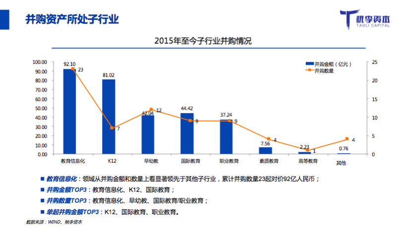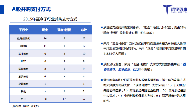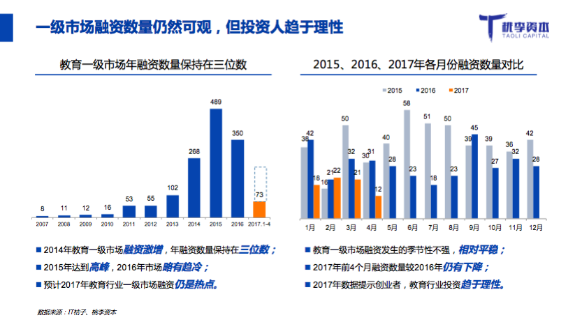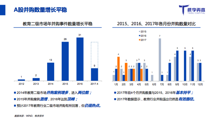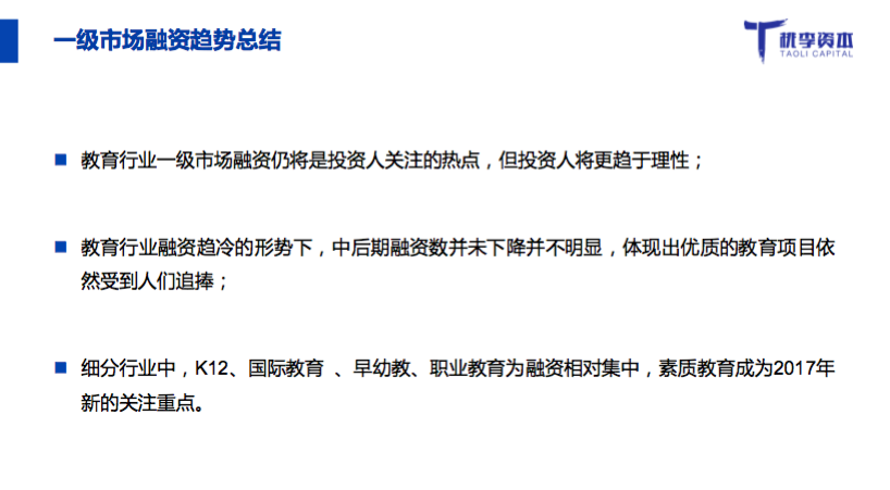 桃李資本合伙人郭西凡在活動中發(fā)布了《2017年教育行業(yè)融資并購報告》: