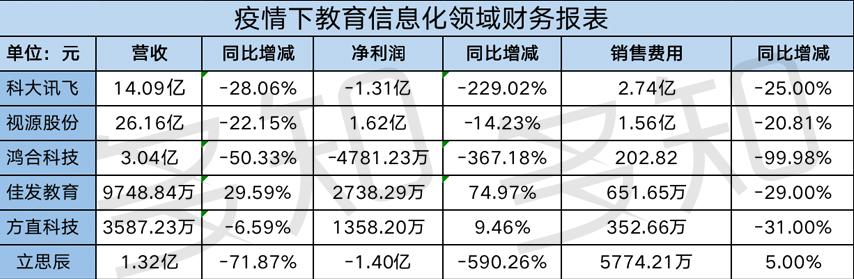 教育信息化企業(yè)在疫情期間也算是受益的一方。但是,由于學(xué)校停課,各家給予公立學(xué)校的業(yè)務(wù)支持均為公益活動(dòng),因此,營(yíng)收和利潤(rùn)方面并未在當(dāng)季中體現(xiàn)。從6家公司業(yè)績(jī)來(lái)看,僅佳發(fā)教育實(shí)現(xiàn)營(yíng)收同比增長(zhǎng),且在報(bào)告期內(nèi)實(shí)現(xiàn)盈利。