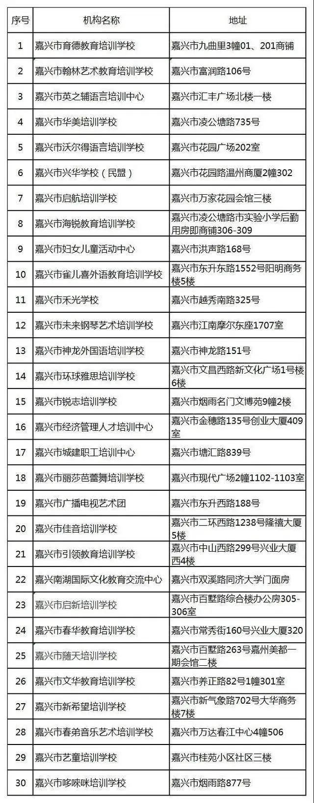 多知網(wǎng)5月22日消息,近日,嘉興市教育局審批通過了部分校外培訓(xùn)機(jī)構(gòu)的申請,并公示了第一批復(fù)課的30家機(jī)構(gòu)名單。