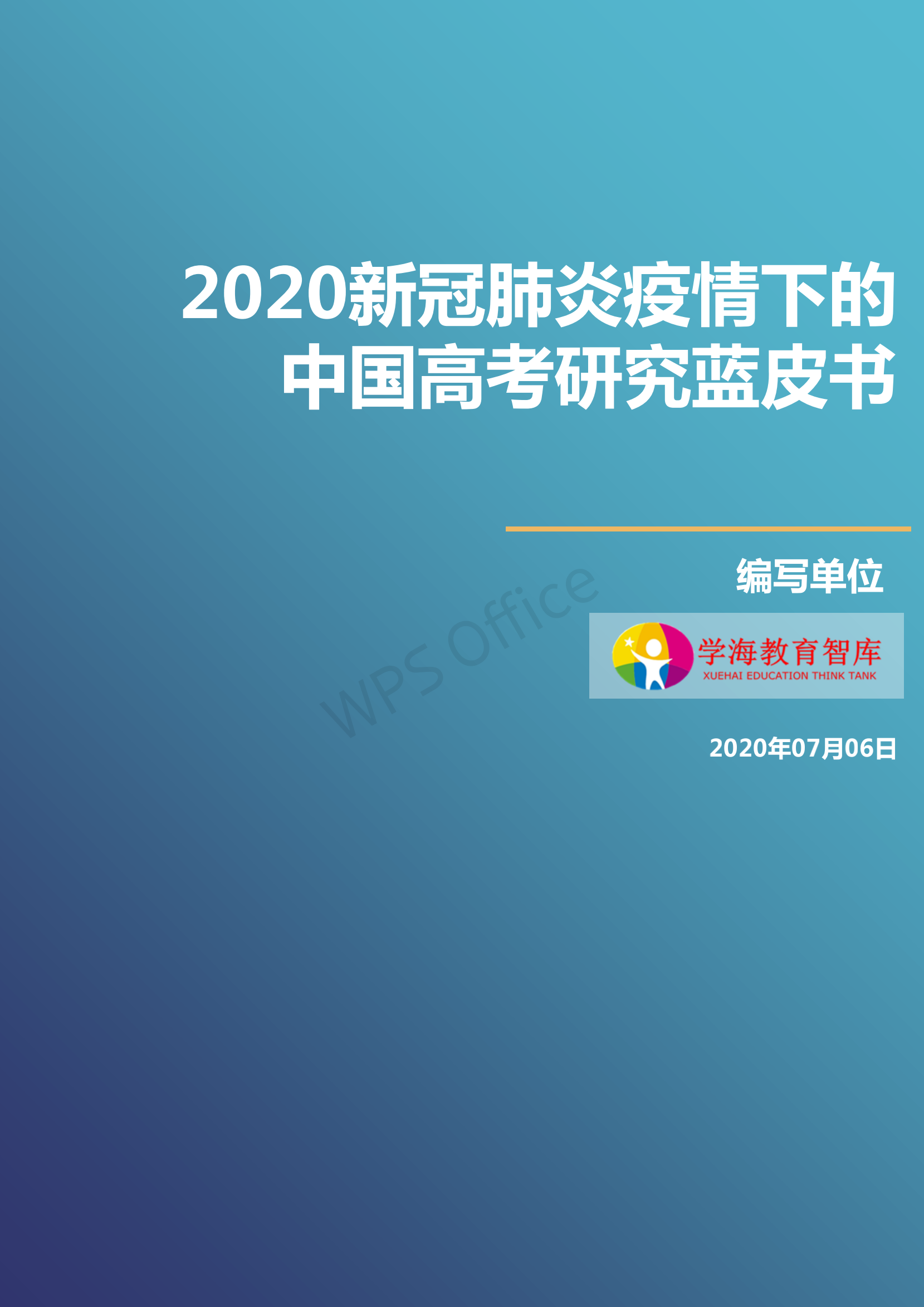 本文系學(xué)海教育智庫發(fā)布的一份名為《2020新冠肺炎疫情下的中國高考研究藍(lán)皮書》。