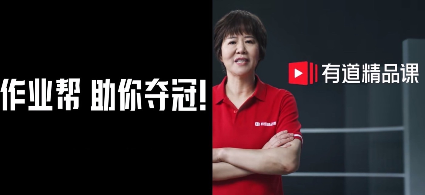 在電影院正式觀看《奪冠》之前,率先將觀眾拉進(jìn)電影場景的,就是來自兩家大班課品牌——作業(yè)幫以及有道精品課的院線貼片廣告。