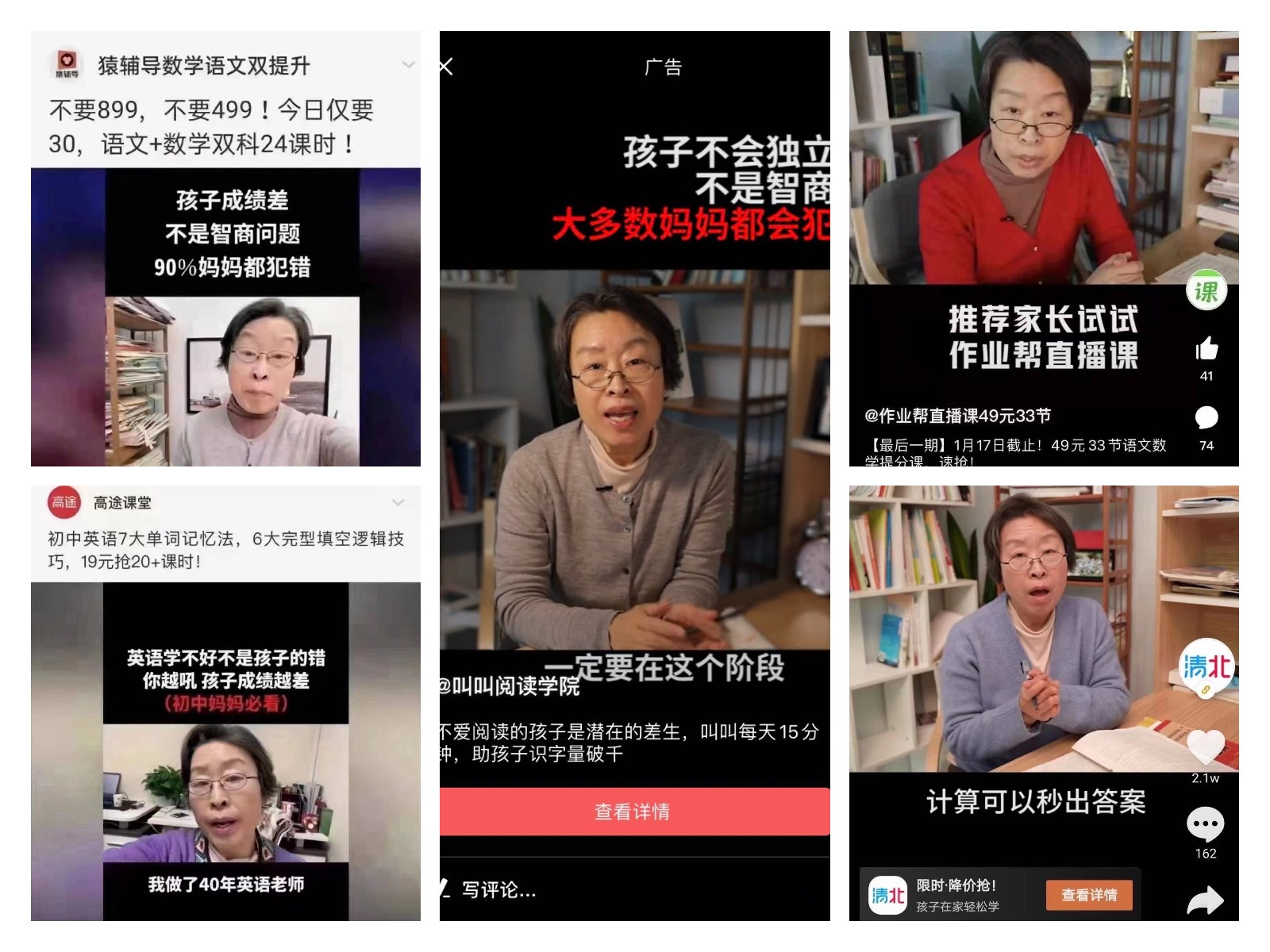 淘寶搜“媽媽服裝”、“爸爸服裝”,不同的商家,不同的服裝類型可能看到的是同一個“模特”。這兩年,隨著教育投放增多,在抖音上可以看到類似的現(xiàn)象:同一個“資歷深厚的老師”同時“推薦了”四家在線大班課和一家在線大語文。