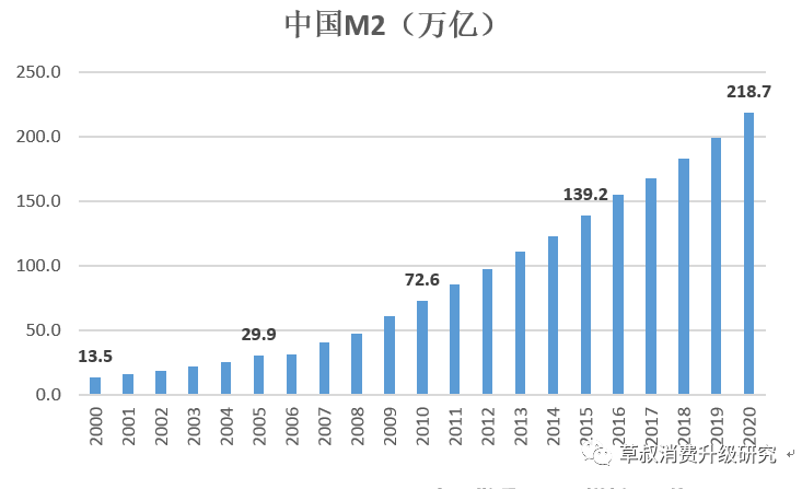 圖:2000-2020,中國貨幣量M2增長約16倍