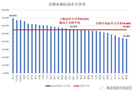 圖:全國平均下來大概也是55%的人才能上高中,不是上海/江蘇的特例