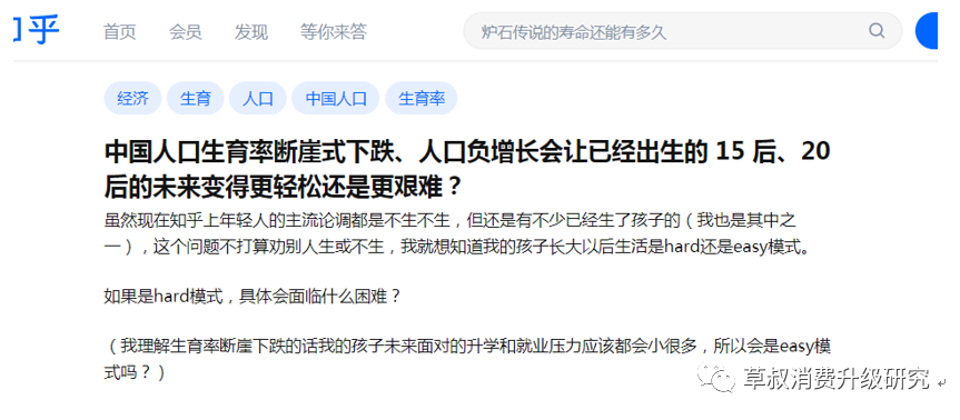 圖:國內(nèi)某知名問答網(wǎng)站提問“生育率下滑是否會使得未來孩子是easy模式?”