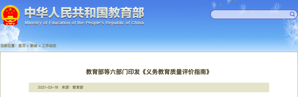 多知網(wǎng)3月18日消息,今日教育部召開發(fā)布會介紹,根據(jù)中央有關(guān)文件要求,經(jīng)中央教育工作領(lǐng)導小組同意,教育部等六部門聯(lián)合印發(fā)了《義務(wù)教育質(zhì)量評價指南》(以下簡稱《評價指南》)。
