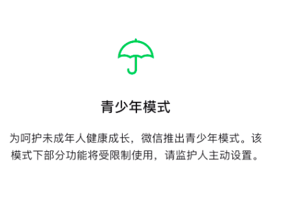 多知網(wǎng)3月3日消息,微信官方公眾號“微信派”今日宣布,微信對青少年模式再次升級,用戶可一鍵開啟青少年模式。