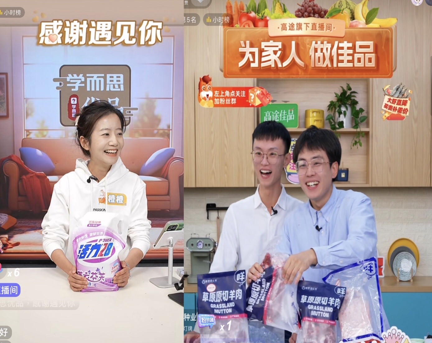 兩個(gè)直播間依靠不同氣質(zhì)脫穎而出,逐漸擺脫了“腳踝部直播間”的身份。同時(shí),它們也都有了出圈的人氣主播。