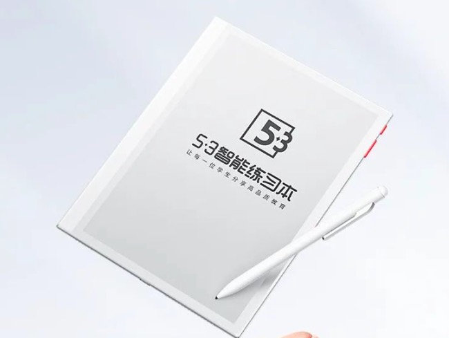據介紹,5.3智能練習本是一款以練促學的墨水屏智能練習平板,輕薄便攜,產品采用9.7寸護眼墨水屏,機身厚度為6.4mm,重量為410g,搭配可書寫的電磁筆。